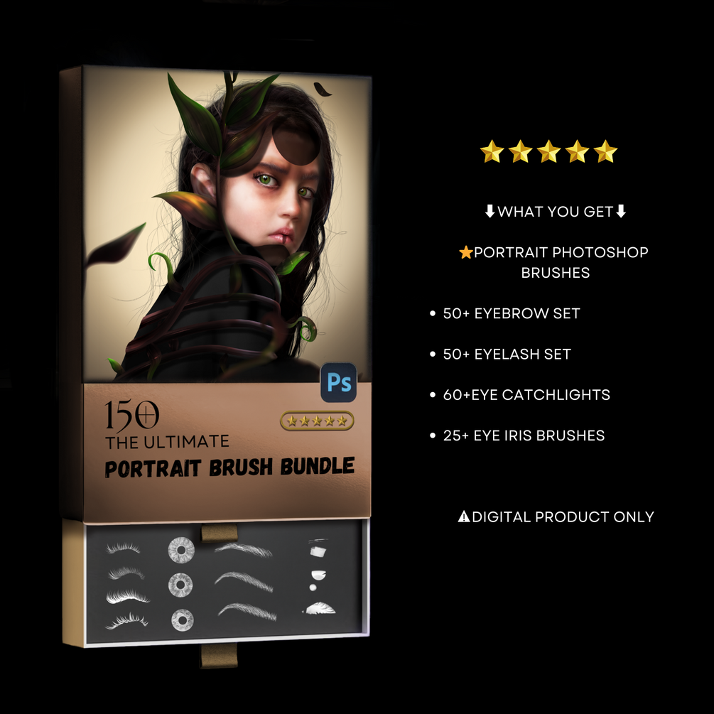 If you're looking to streamline your editing process, this brush set is perfect for you. These brushes create realistic eyebrows, eyelashes and catchlights and more with just one click and a few tweaks, giving your portraits a natural look in seconds.